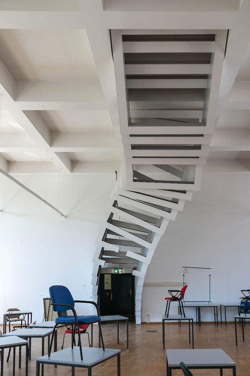 "Als das Gebäude 2022 erneut umgebaut wurde, diesmal für eine Nutzung durch die Hochschule der Musik, musste die Arbeit demontiert werden. Werder der Bau- und Liegendschaftsbetrieb als Bauherr noch die Scholl-Stiftung als Nachlassverwalterin des Künstlers sahen die Möglichkeit, das Werk einzulagern oder anderswo einzubauen."